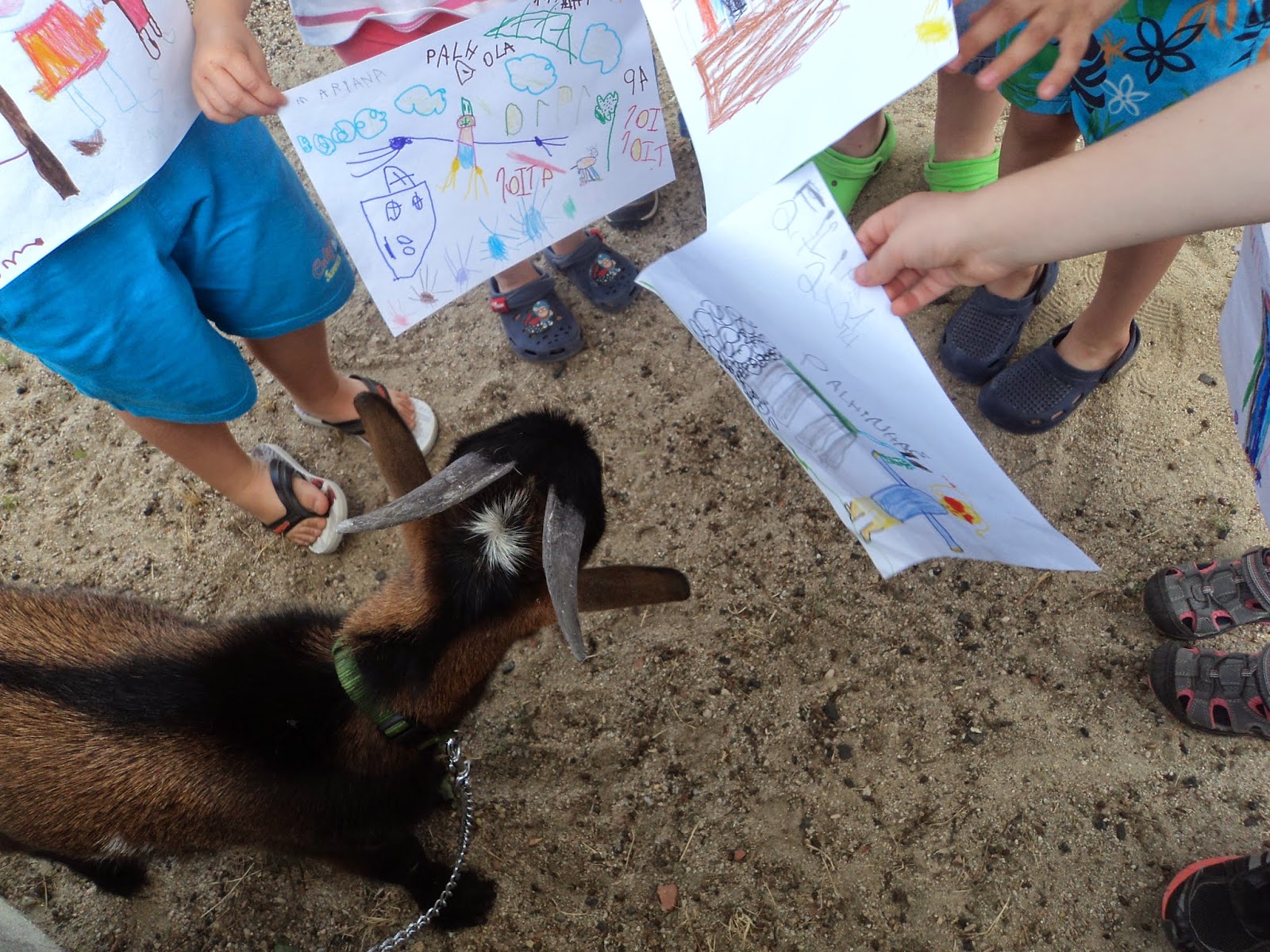 Passado algum tempo, chegou a resposta na caixa do correio. Os nossos amigos responderam às nossas perguntas, mandaram fotografias e fizeram desenhos. Mas o mais importante, é que nos vão oferecer um cabritinho. Chama-se palhinhas e ainda se alimenta do leite da mãe. Só pode vir para cá quando for mais crescido.